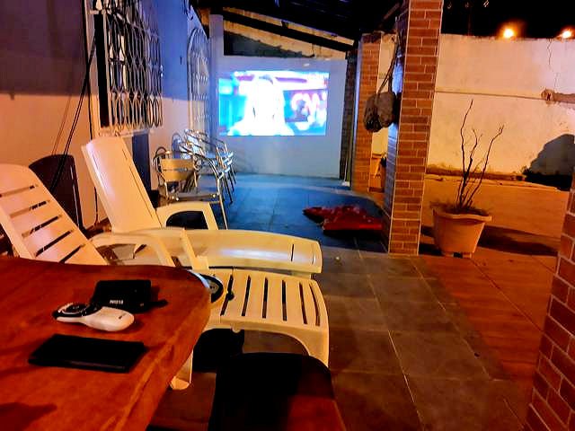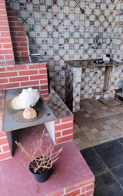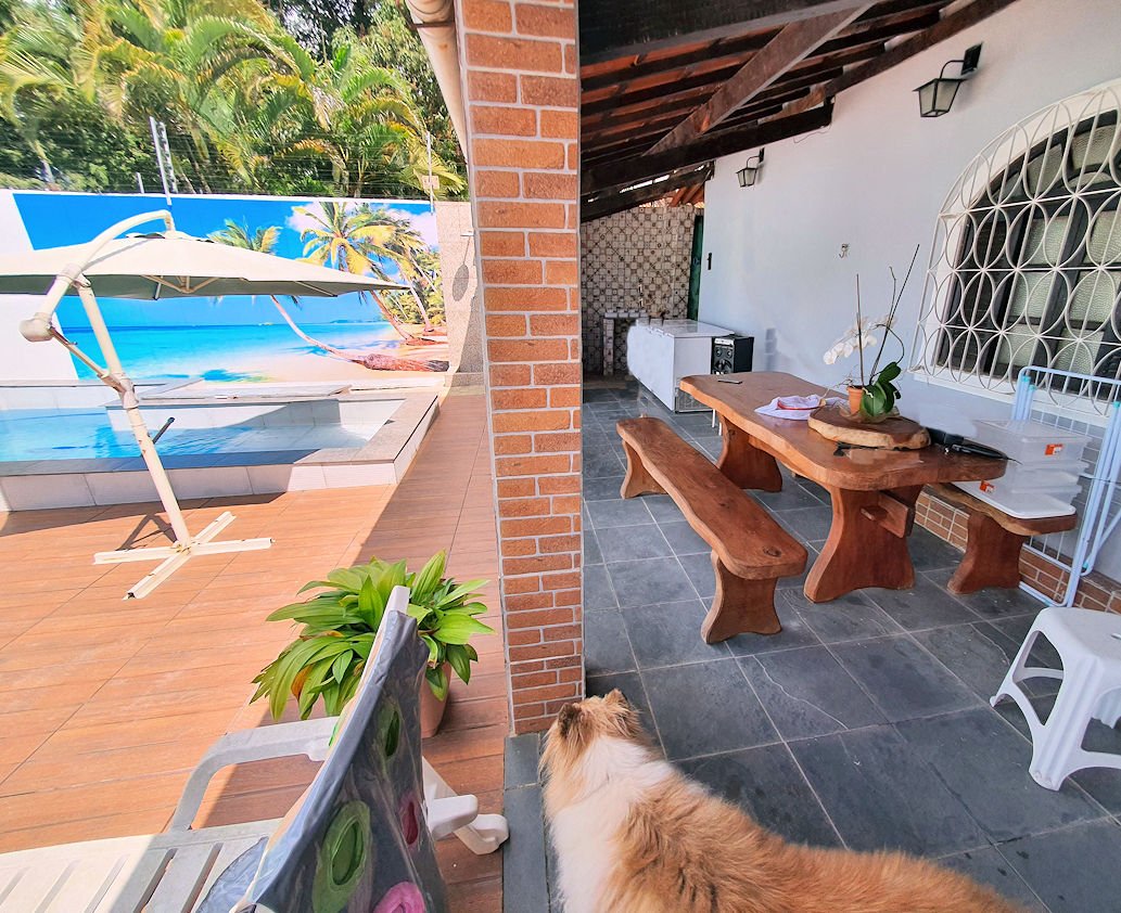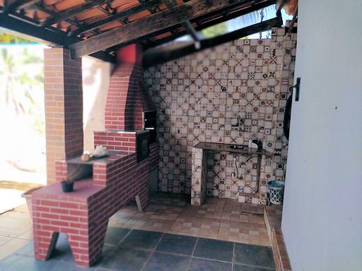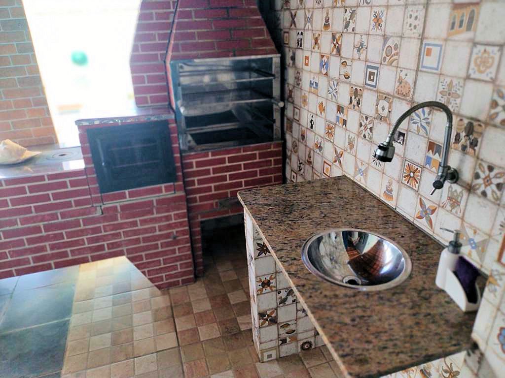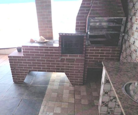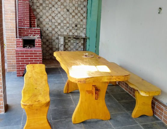 Mesa de madeira maciça jaqueira. Churrasqueira completa com forno e fogão.
